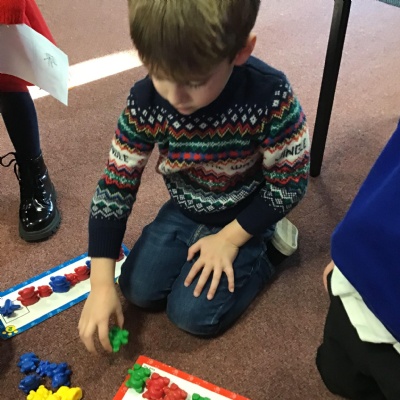 Meerkat class has been playing a game matching numerals to correct quantities. Playing games with dice and number lines enhances the children’s understanding of the order of numbers and allows them to link the numbers with quantities.