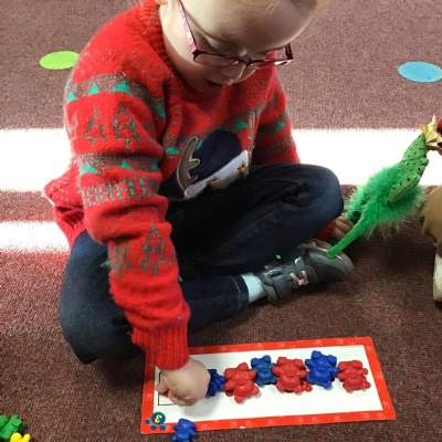 We have also been working on our counting up to 5 and how we use 1 to 1 correspondence to help us count objects. The children have done really well with subitising and can now subitise numbers 1-3.