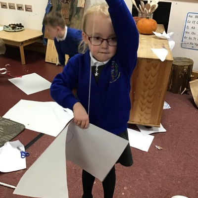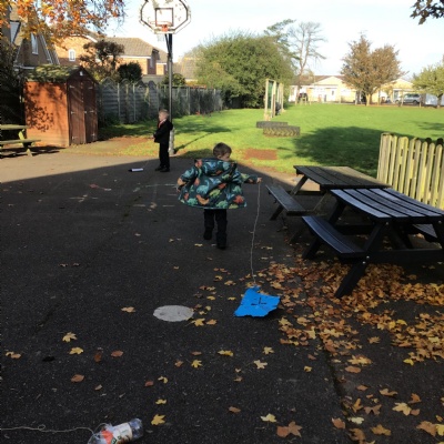 The children have also enjoyed the change in weather. Their main focus this term has been creating kites. They have been using different resources and materials to create kites. We have looked at how kites are made and thought about the resources we need to create a kite that will fly.