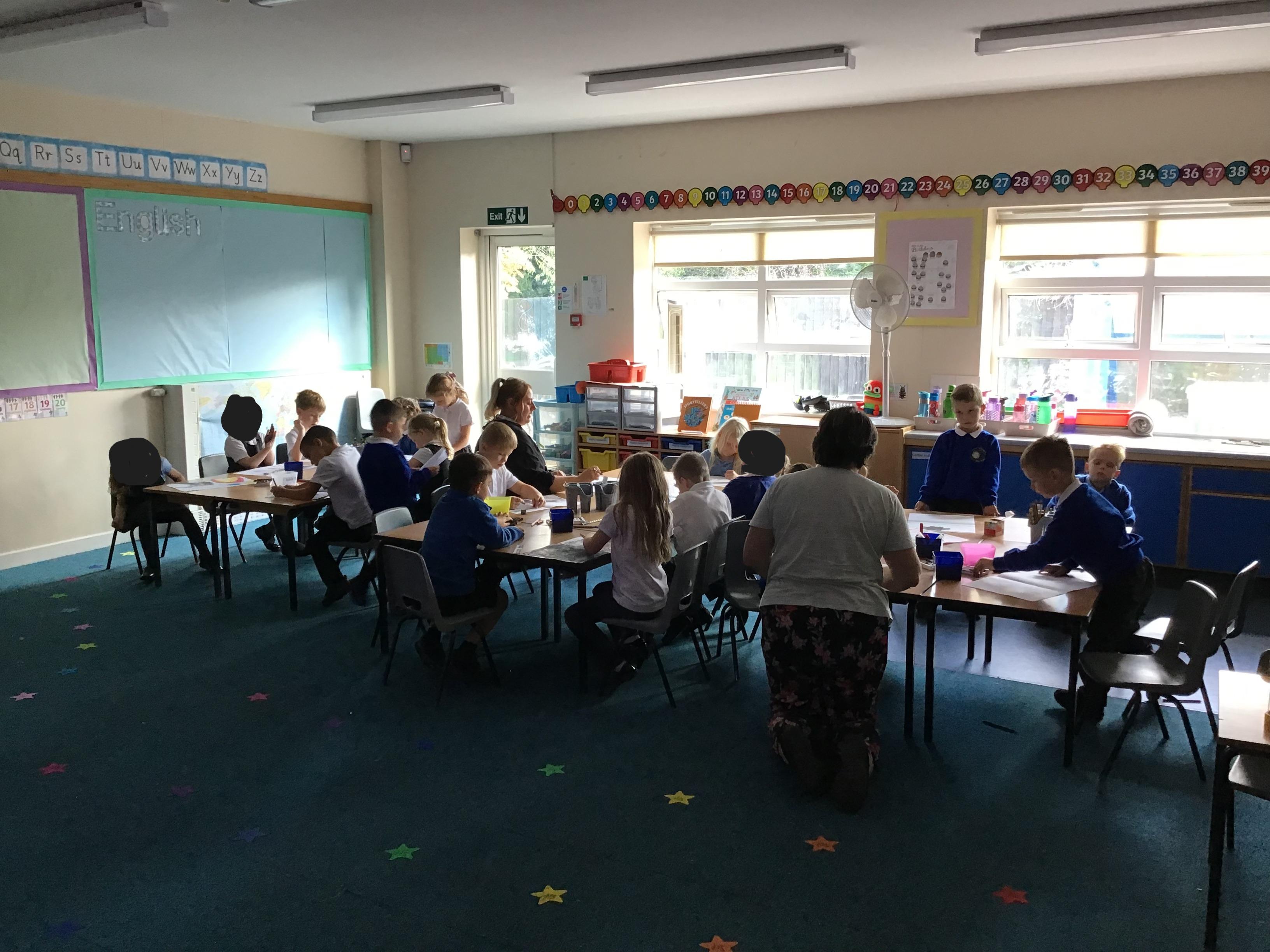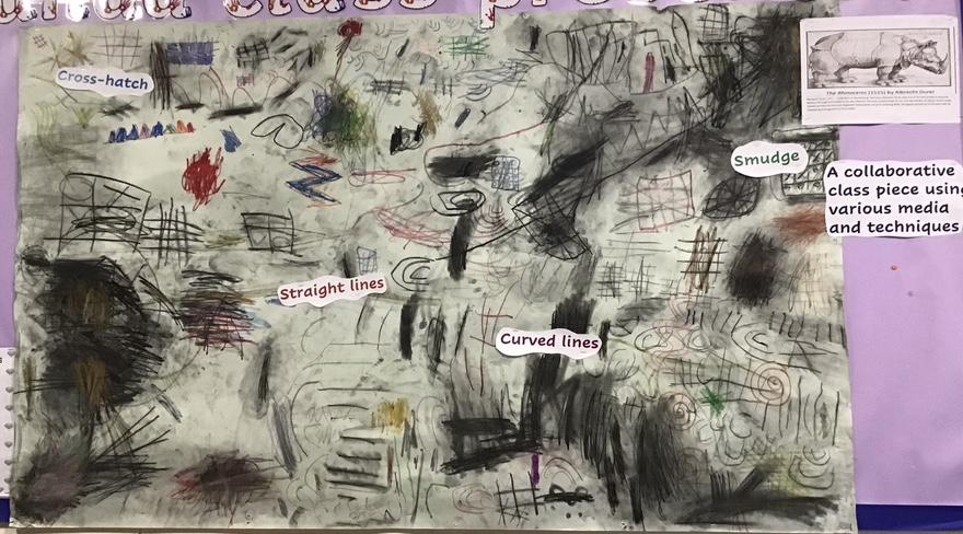 At the end of our first full week, we had our first year 1 art lesson where we could freely express ourselves through drawing with a range of media such as charcoal, oil pastels, HB pencils, metallic crayons, and chalk.