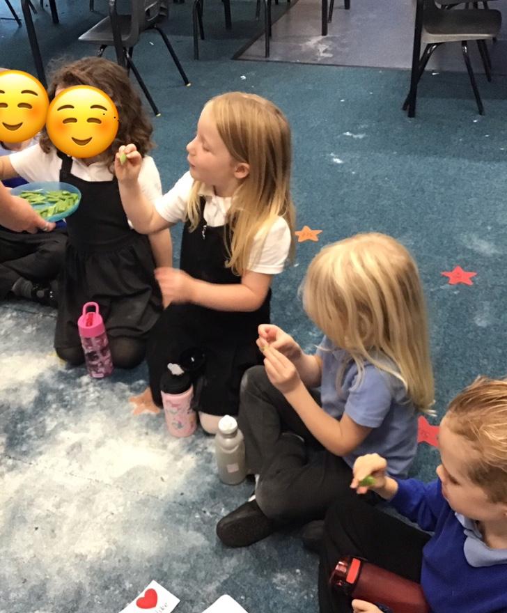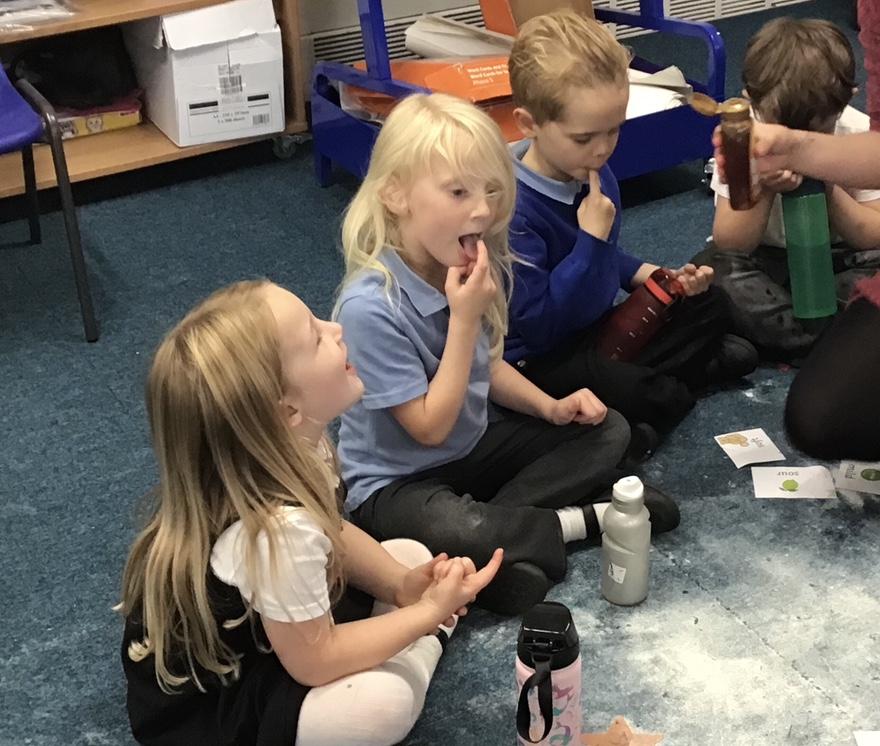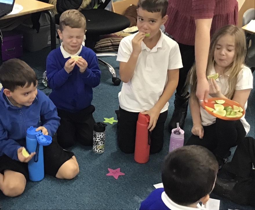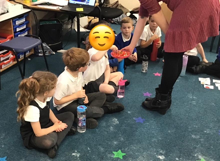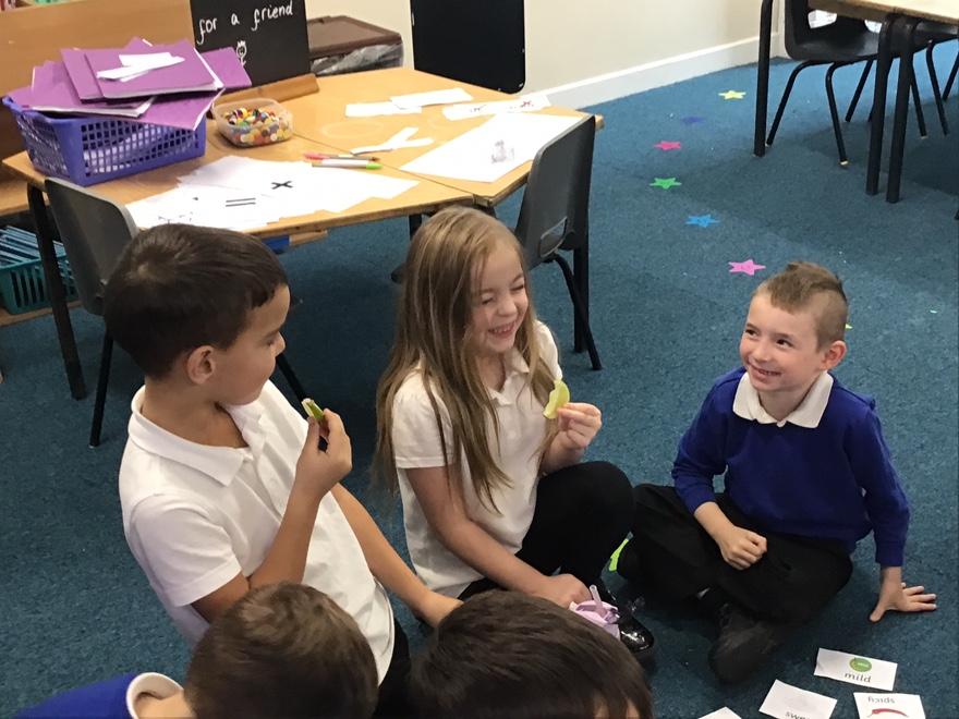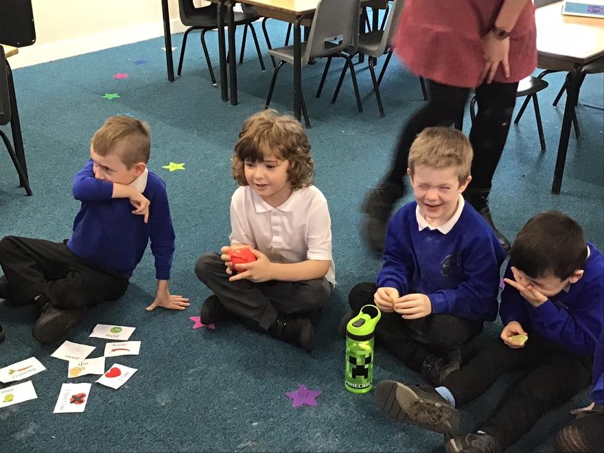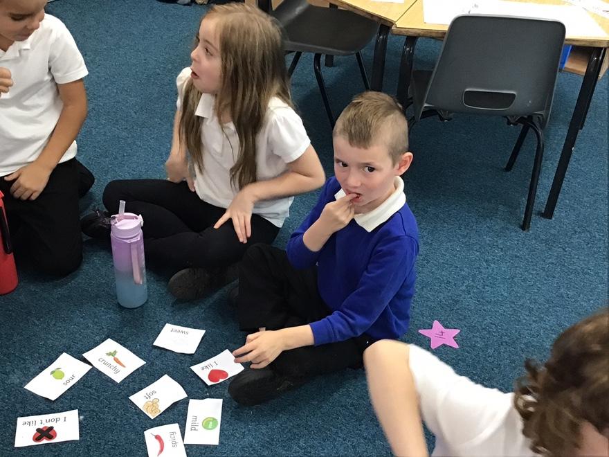 Lastly, in PSHE we have been talking about healthy living and our food tasting event was a particular favourite. We tried strawberries (soft and sweet), peppers (crunchy), honey (sweet), sugar snap peas (crunchy and spicy), and limes (sour!!)