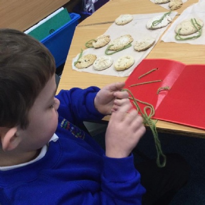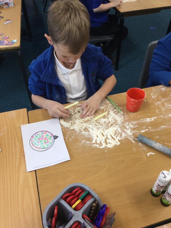 Christmas week- saltdough ornaments, Christmas card threading, Creating a Christmas box.