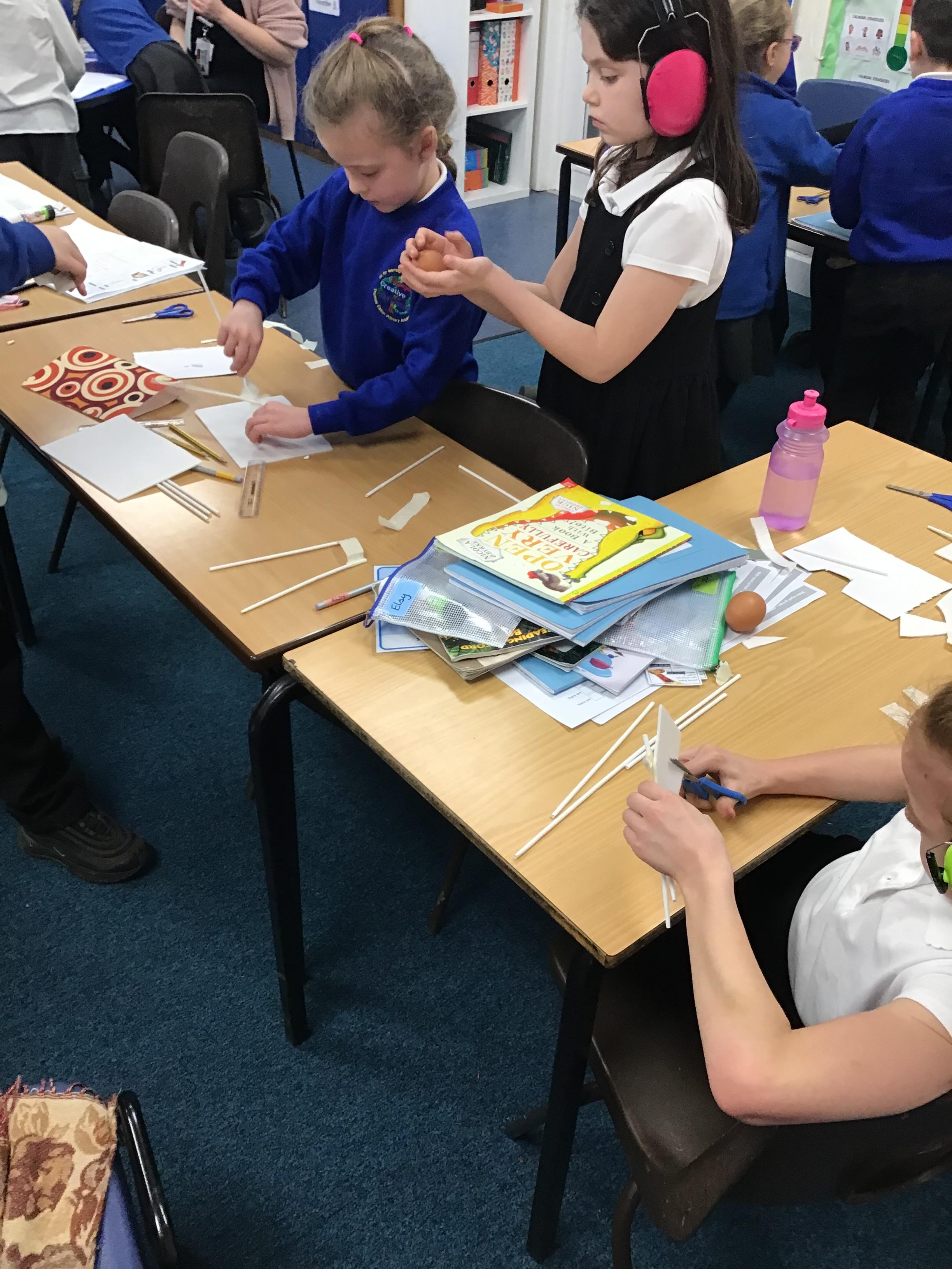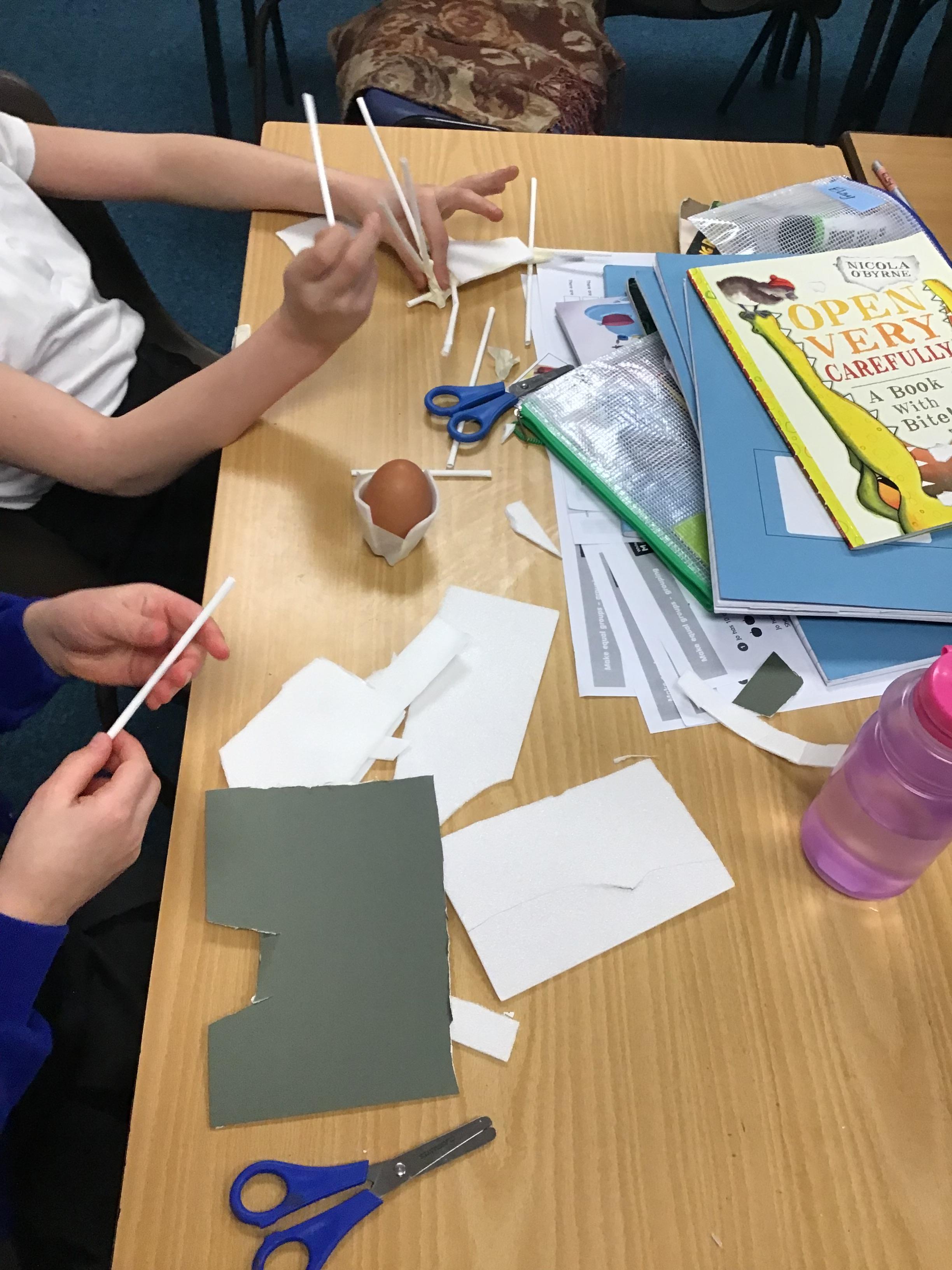 We have also been looking at the human body in Science and have created a skeleton to protect and egg from a fall - several survived!