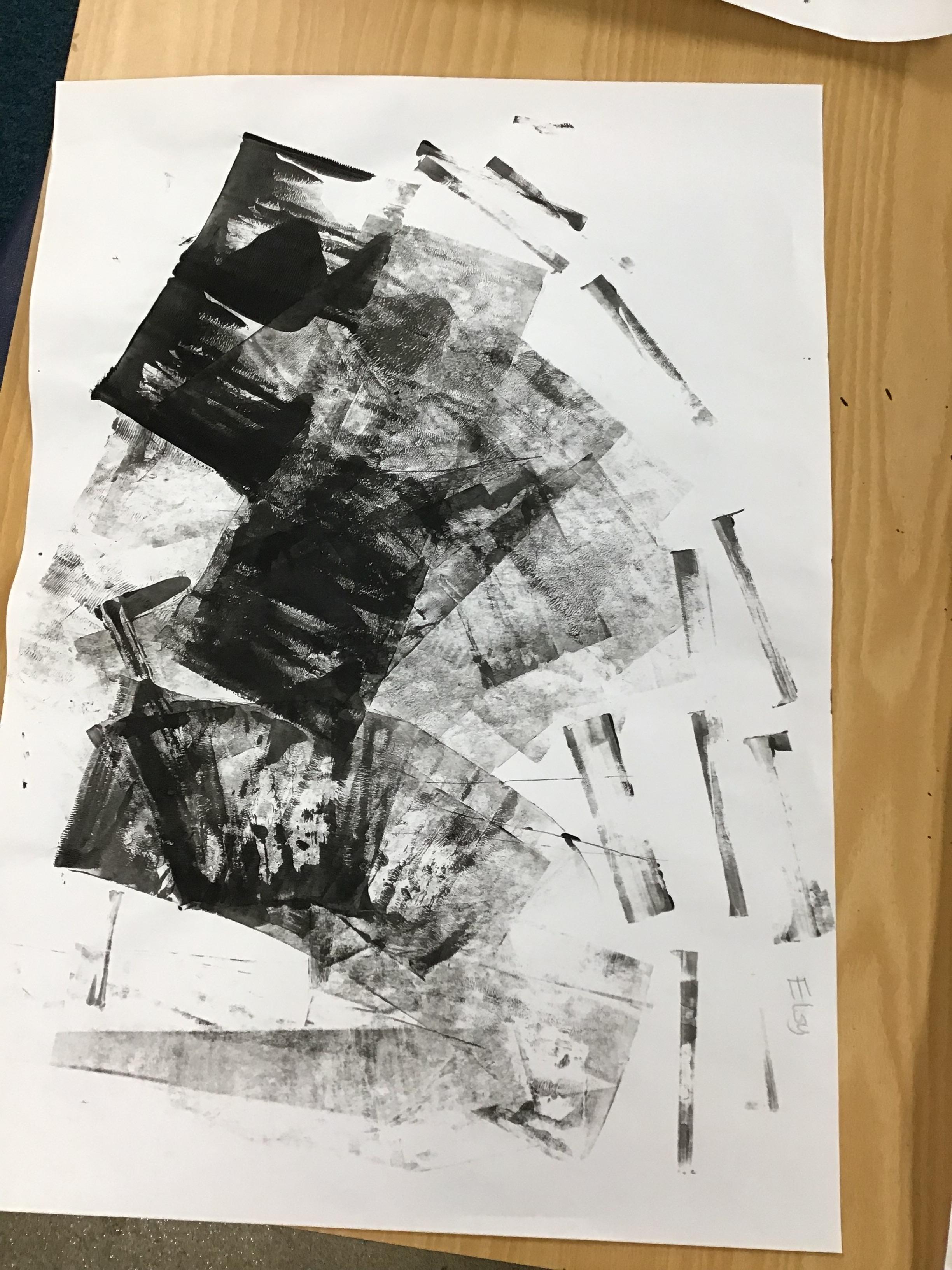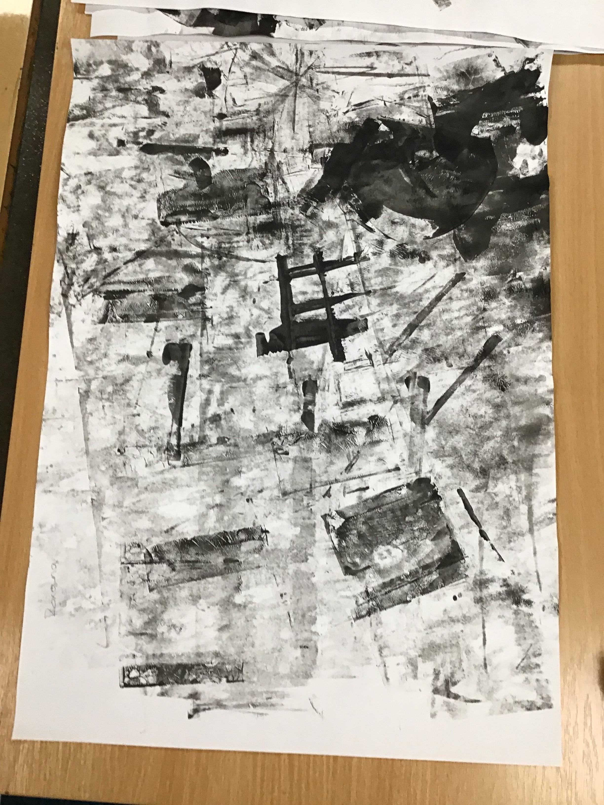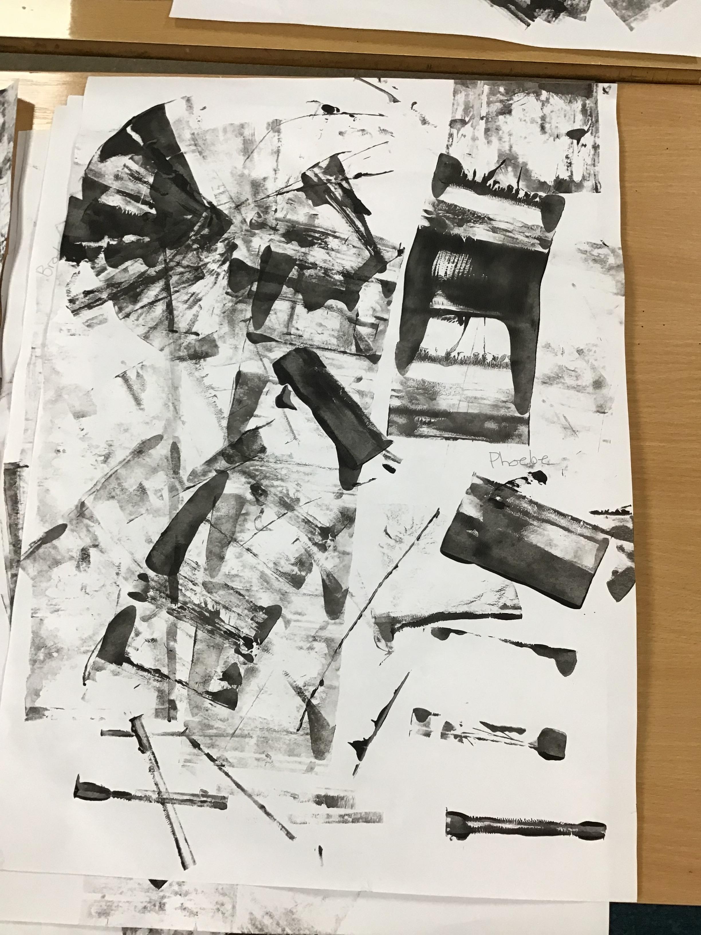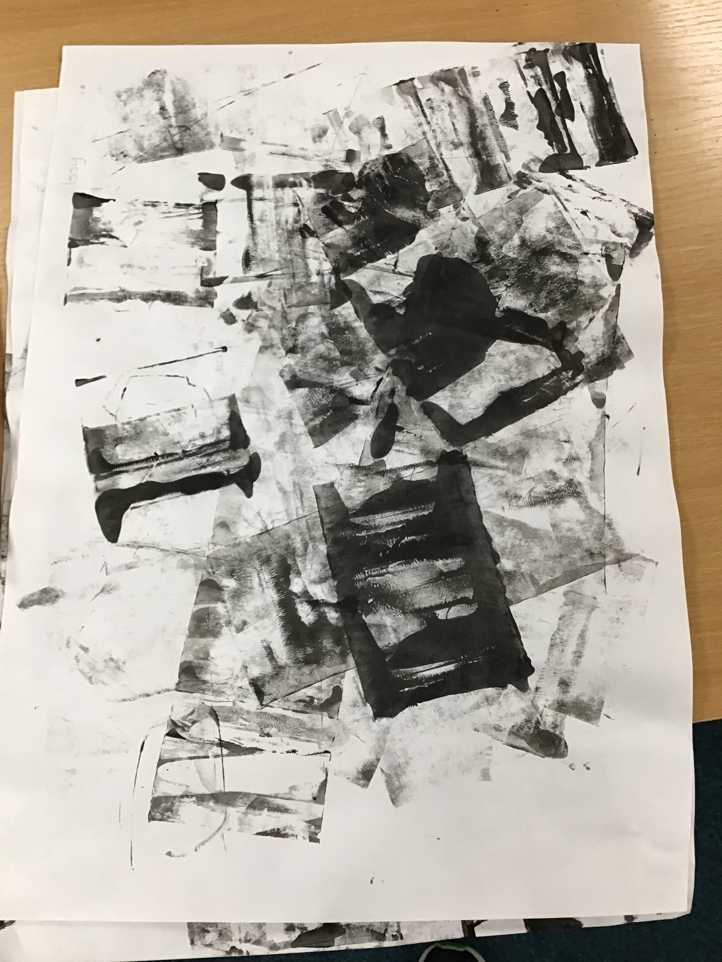 We have been doing printing techniques and looking at the artist Neil Bousfield who creates monoprints.
