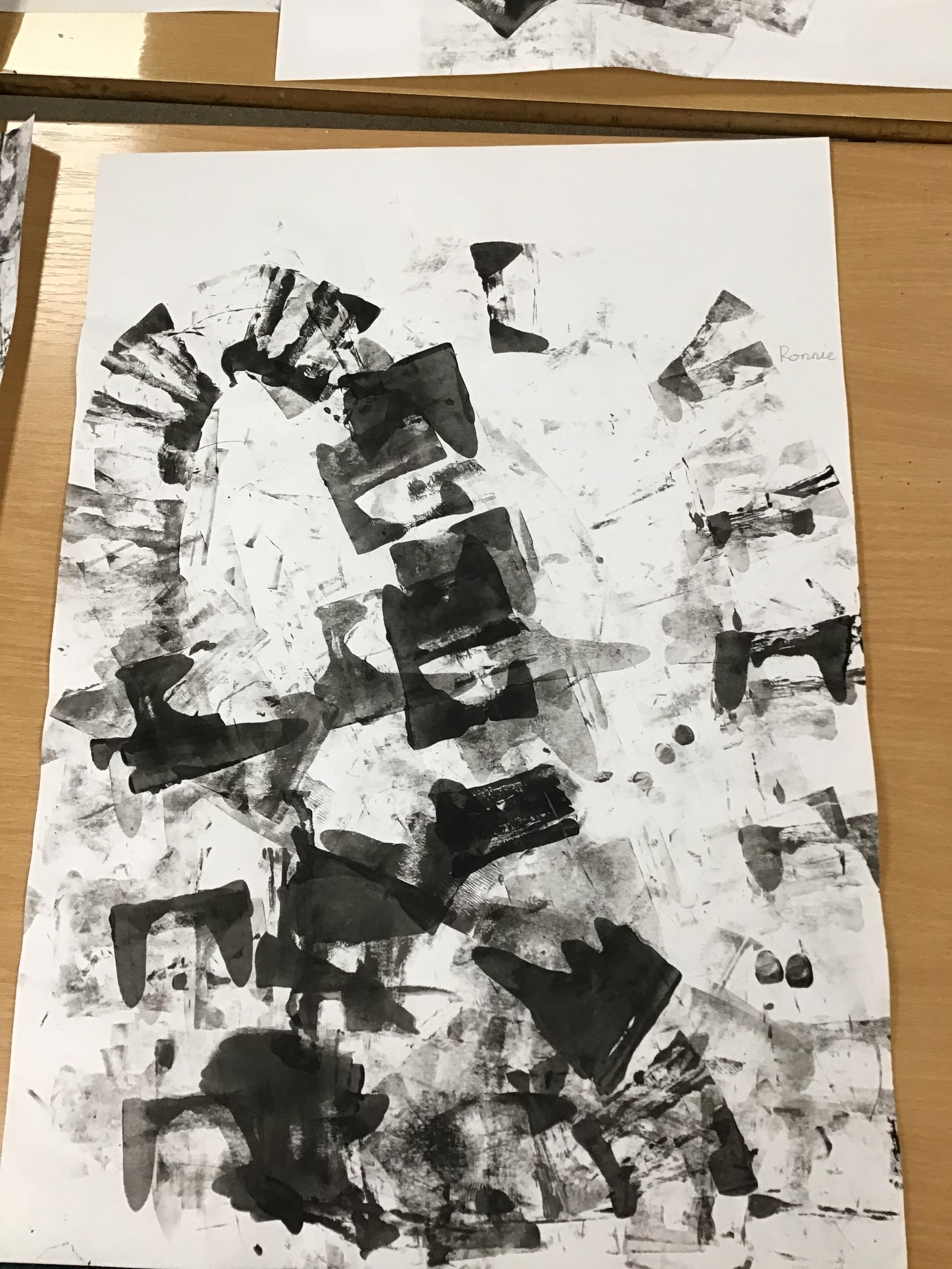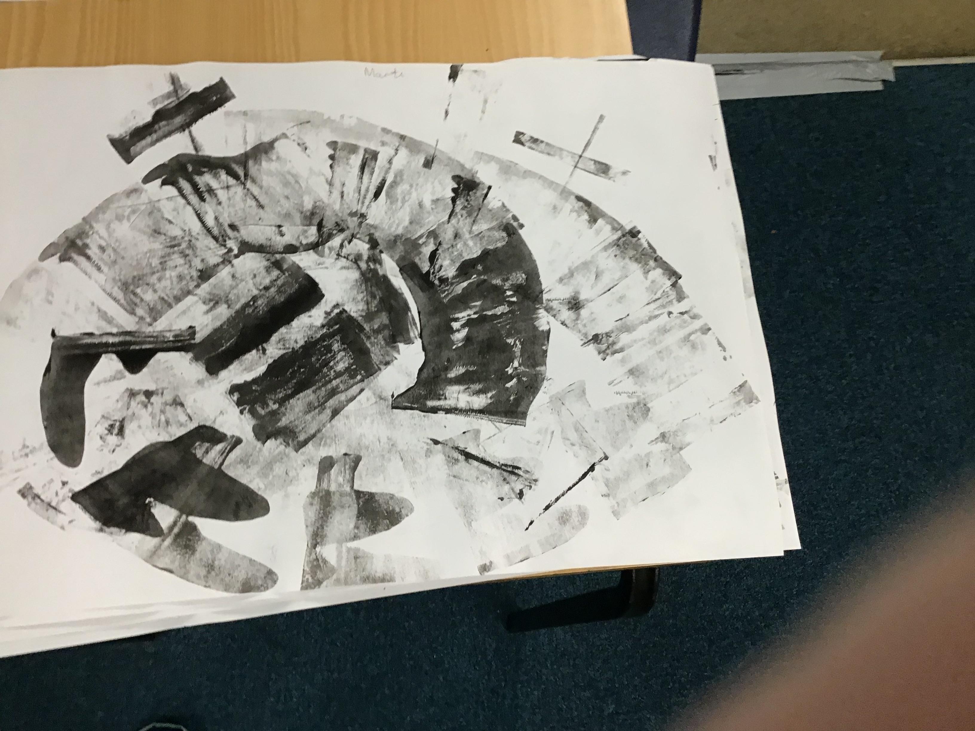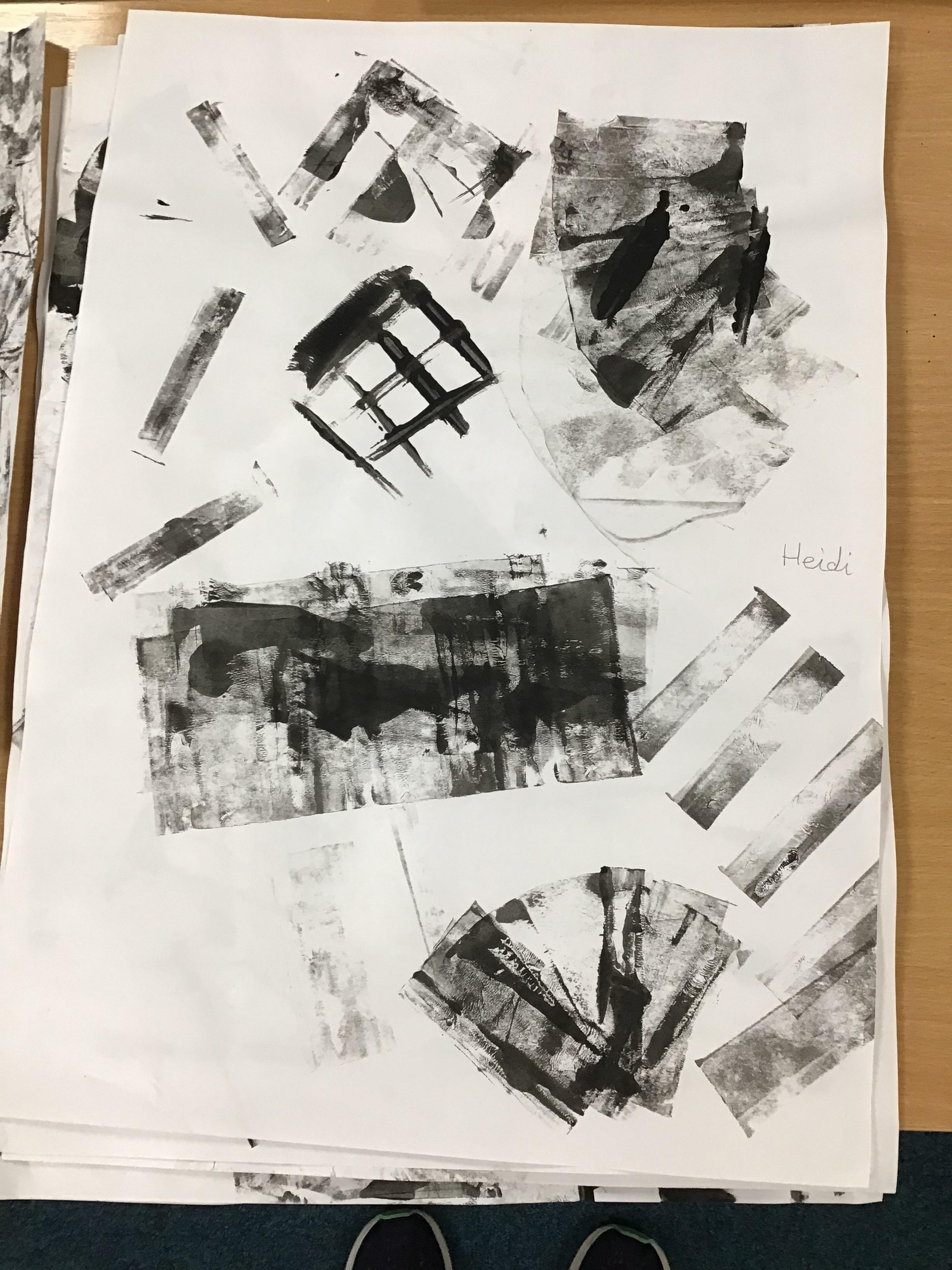 We have been doing printing techniques and looking at the artist Neil Bousfield who creates monoprints.