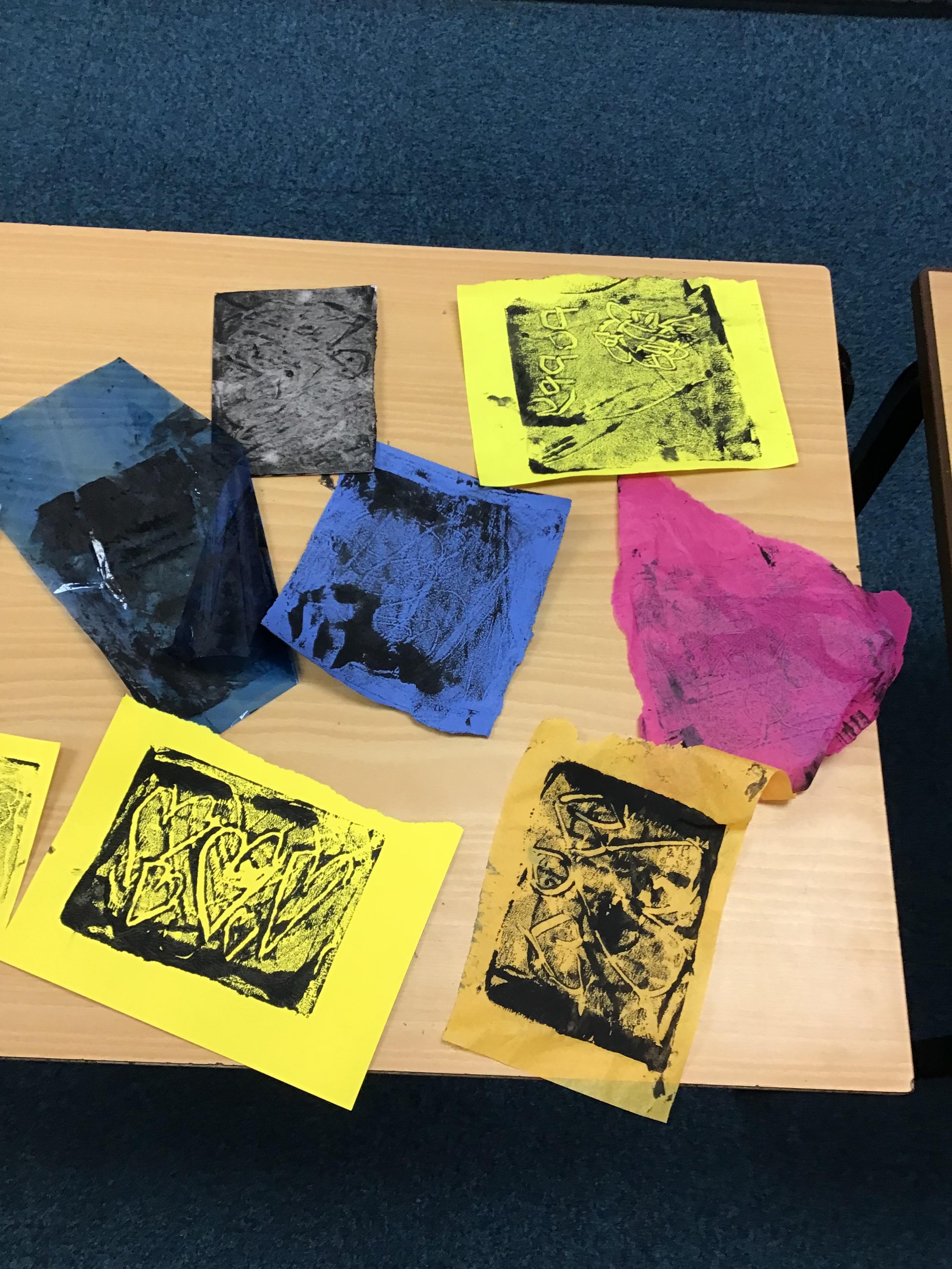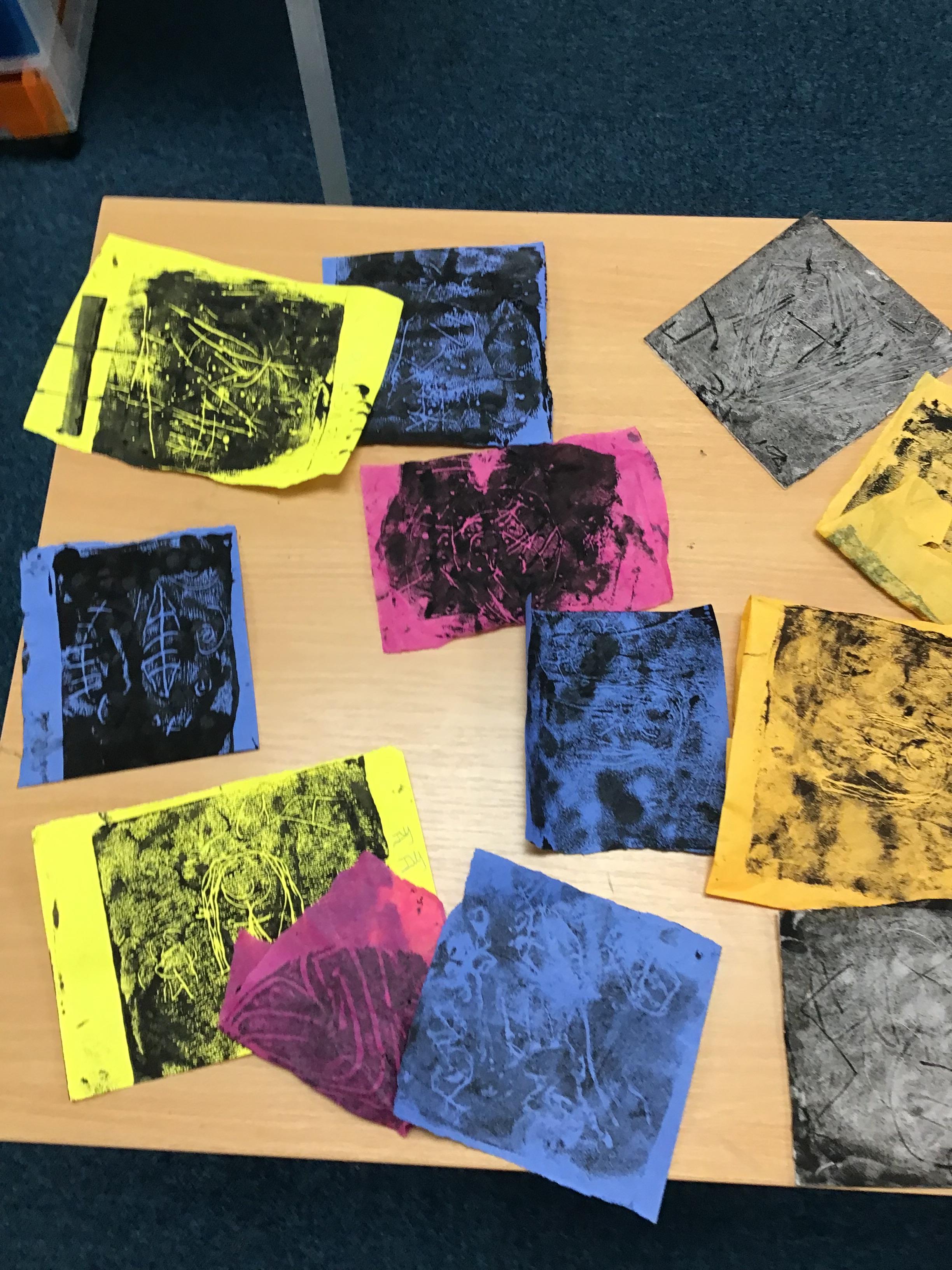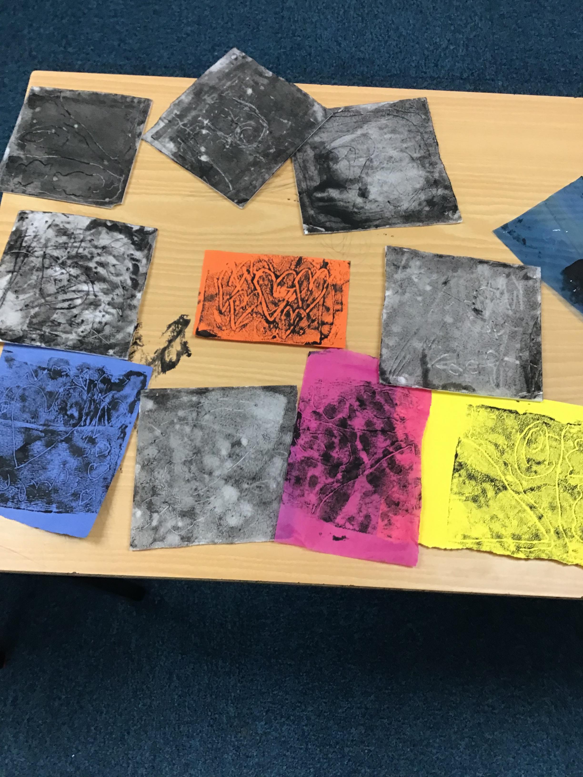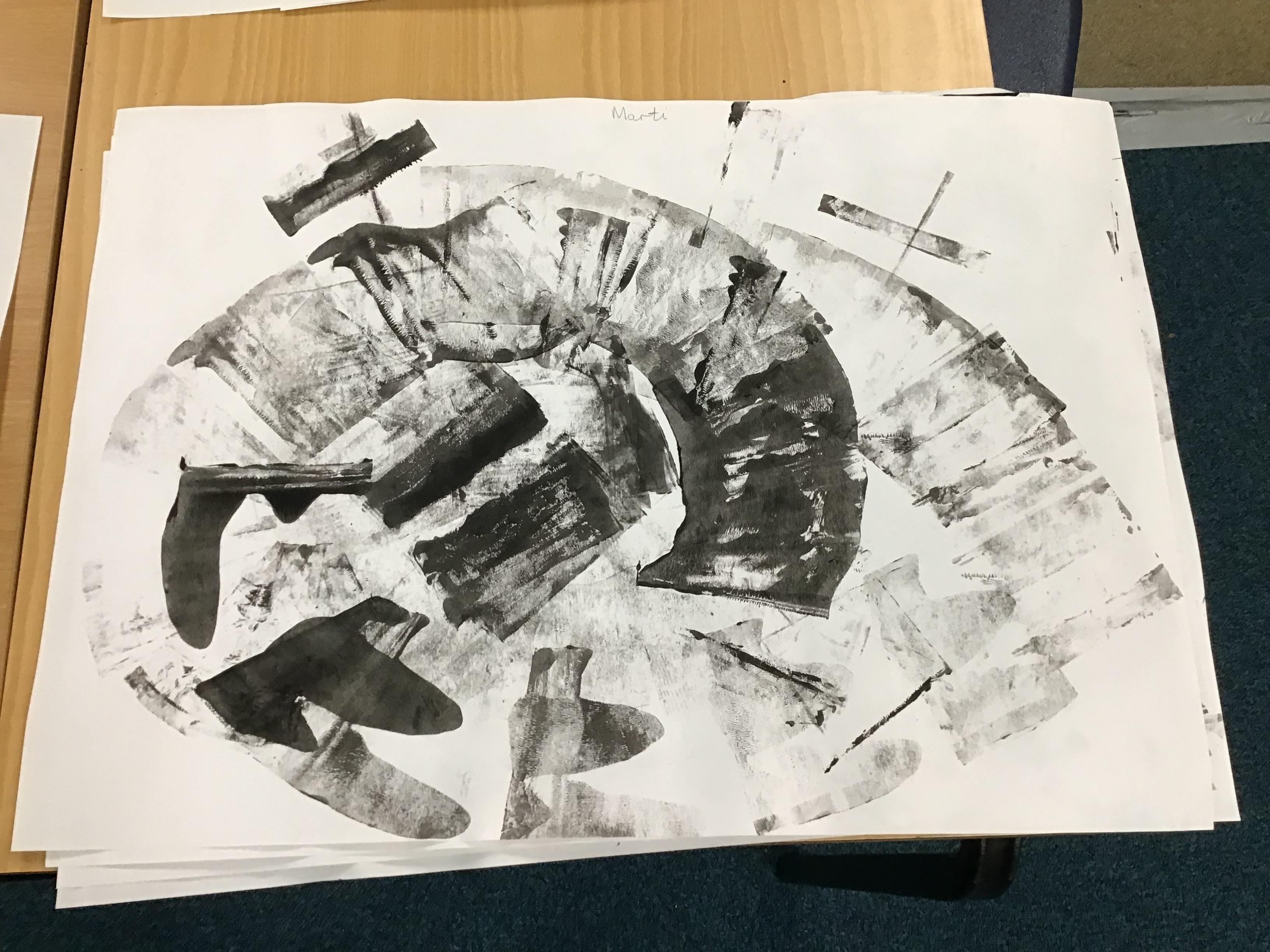 We have been doing printing techniques and looking at the artist Neil Bousfield who creates monoprints.