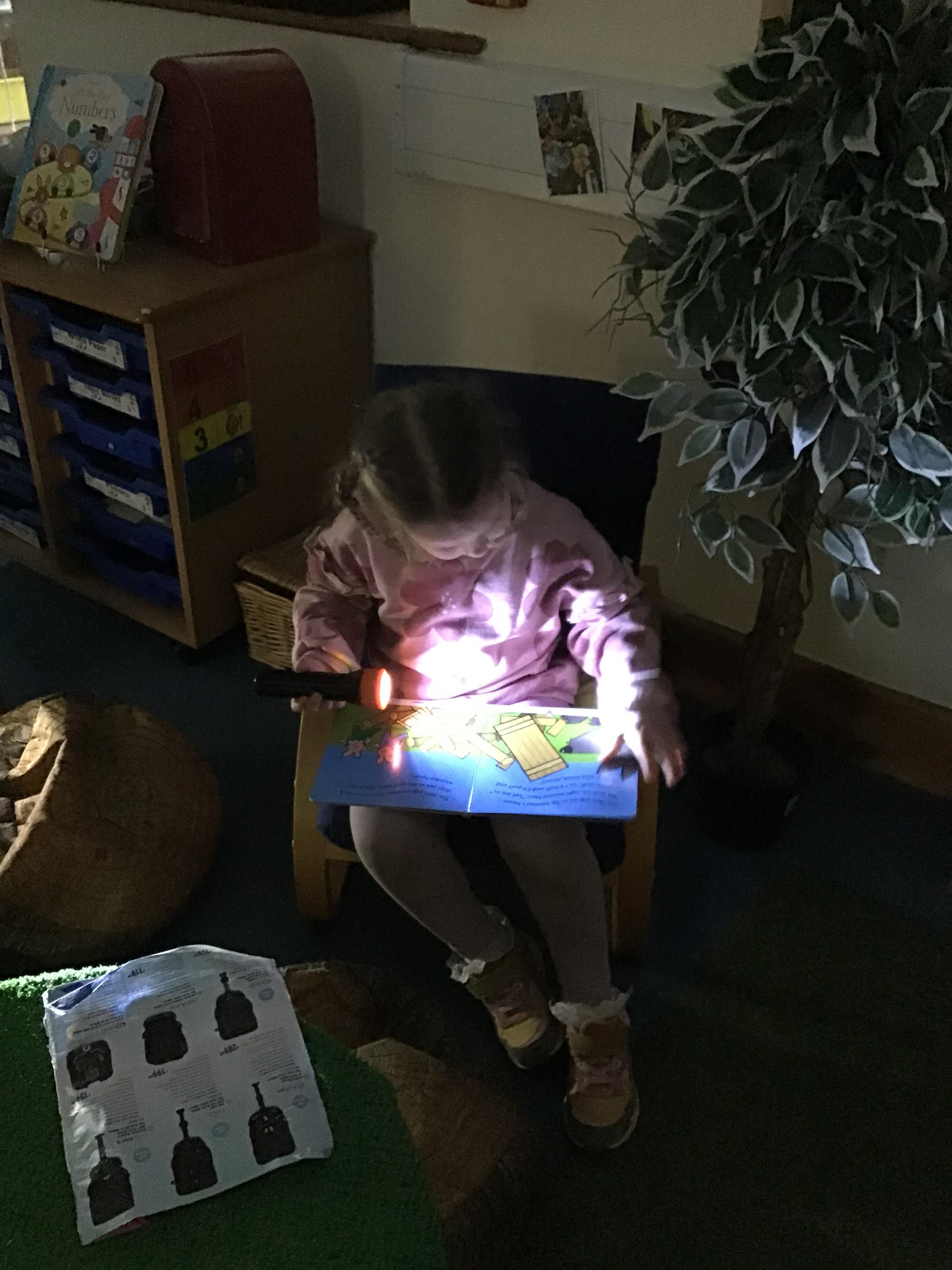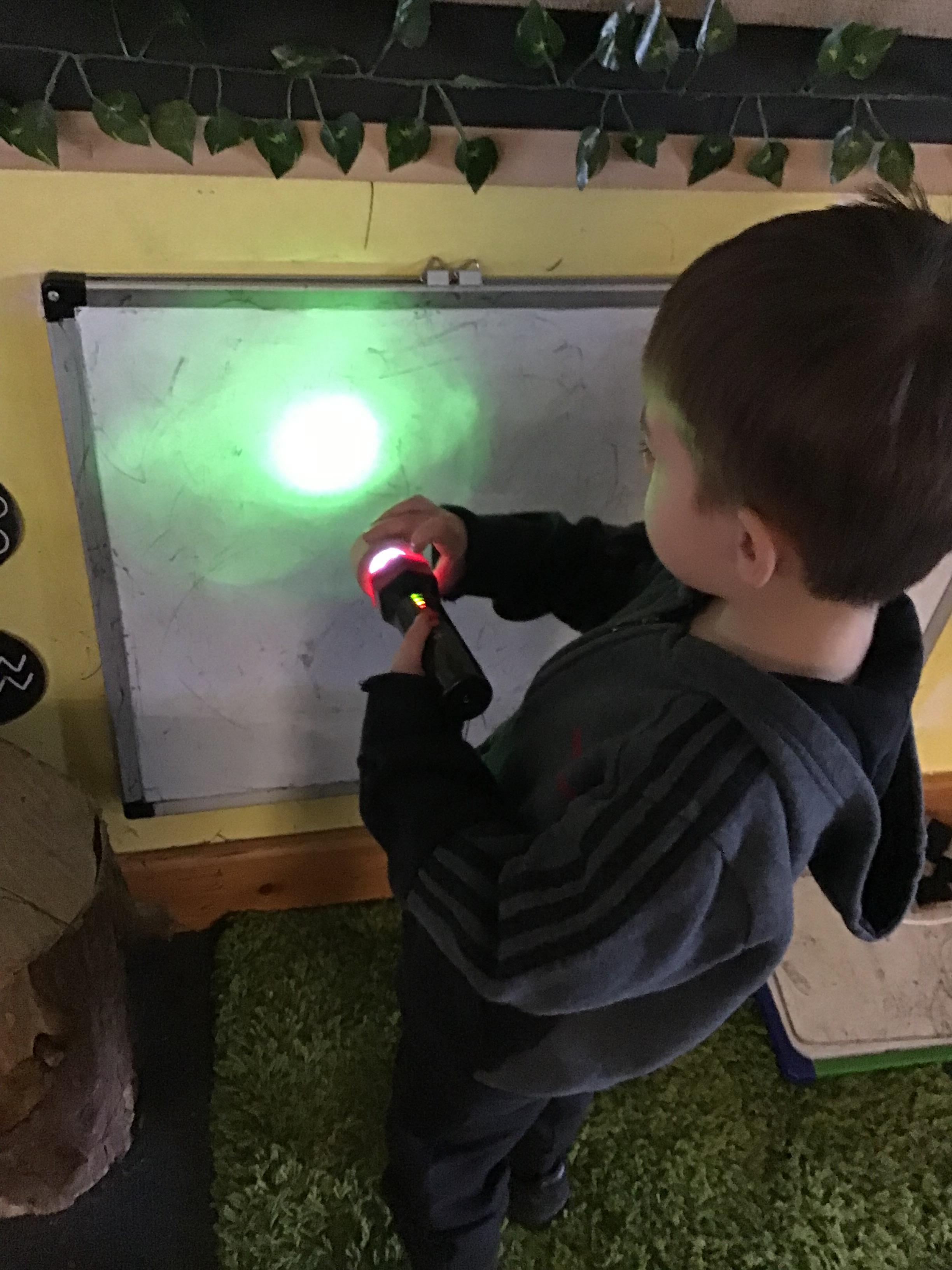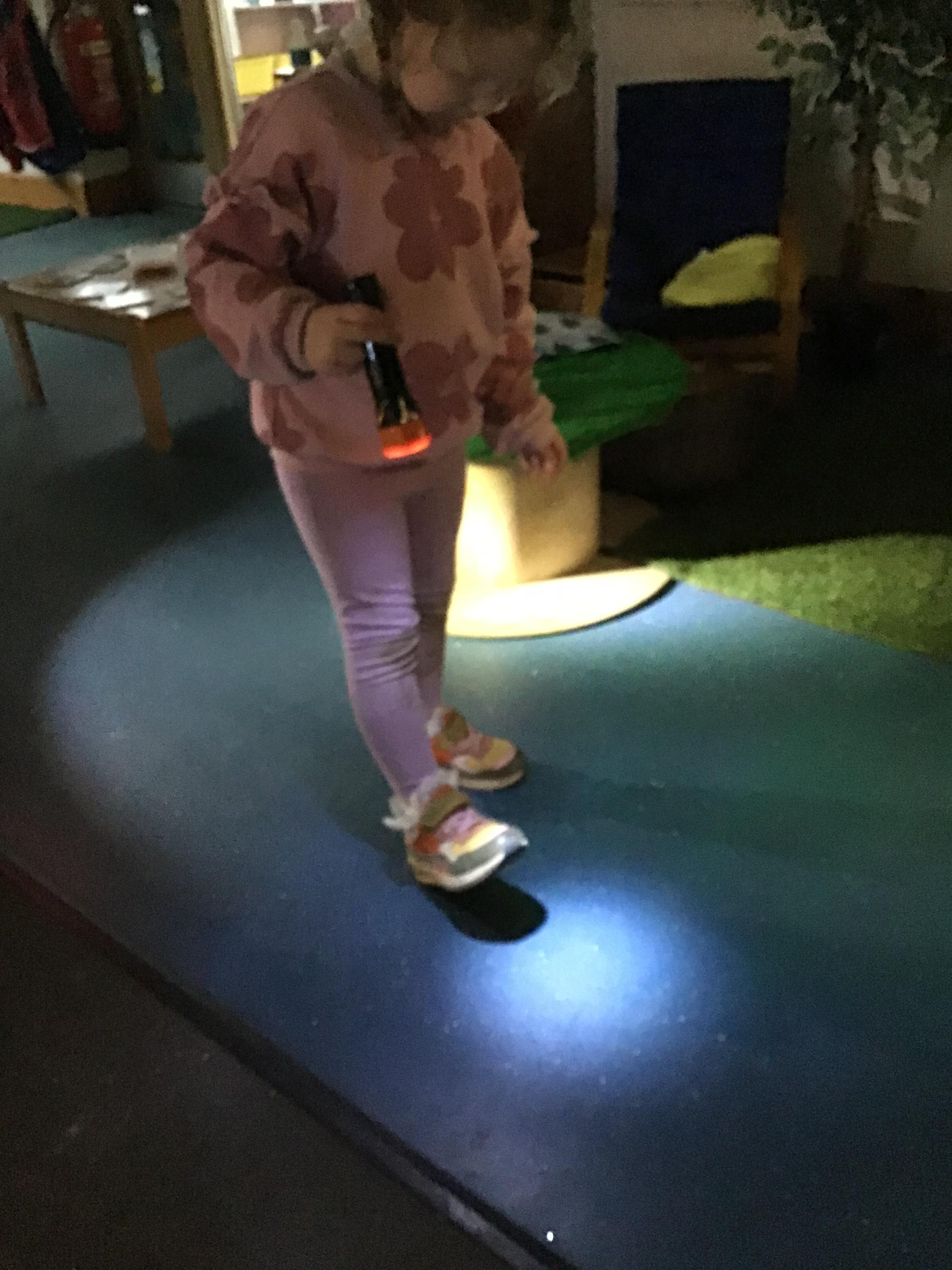 Koala Class have also loved exploring light and dark. They loved taking a torch and exploring shadows with it.