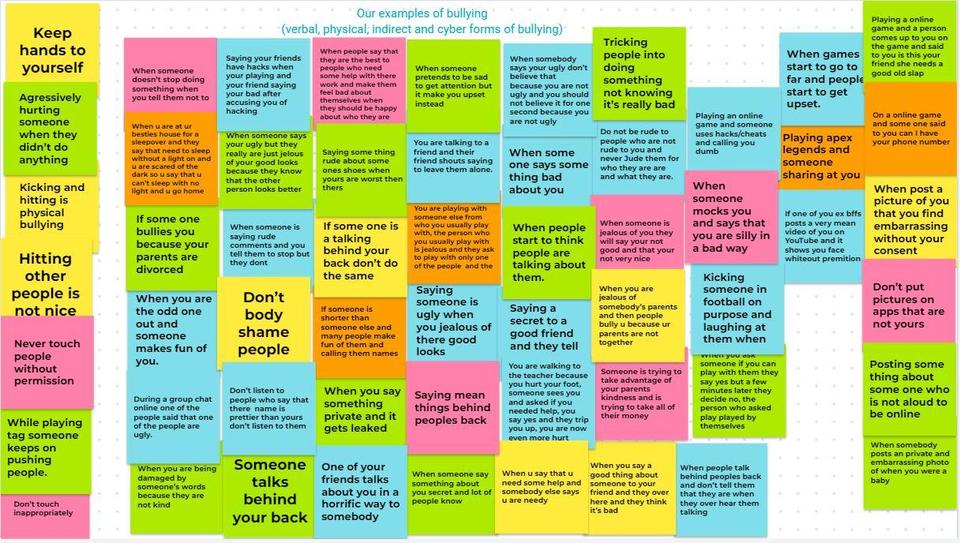 We used a Jamboard to capture our examples of bulling behaviour.