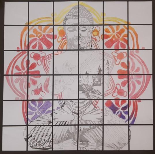 'Sitting Buddha' - A Collaborative Pencil Drawing completed by Thailand class