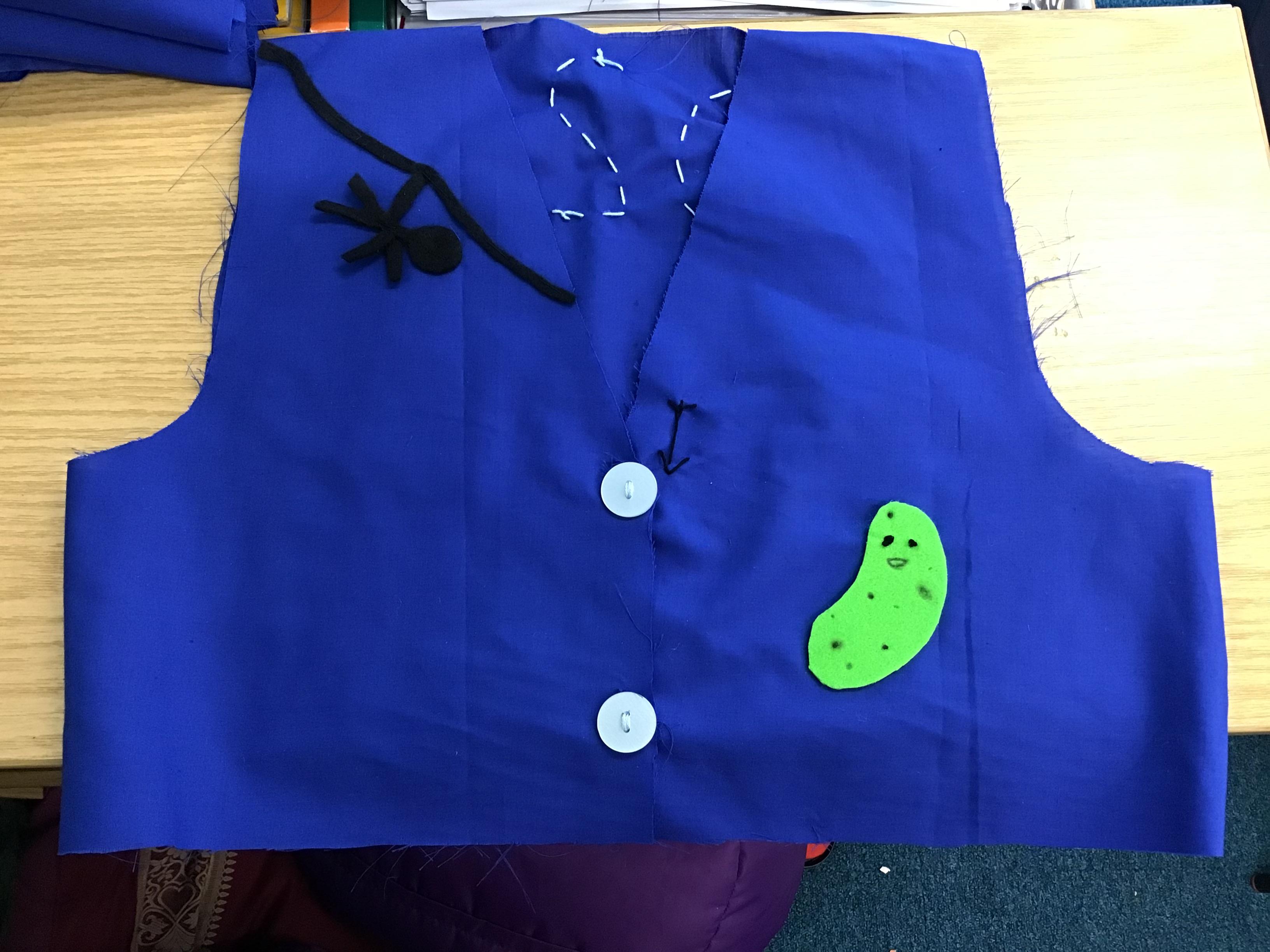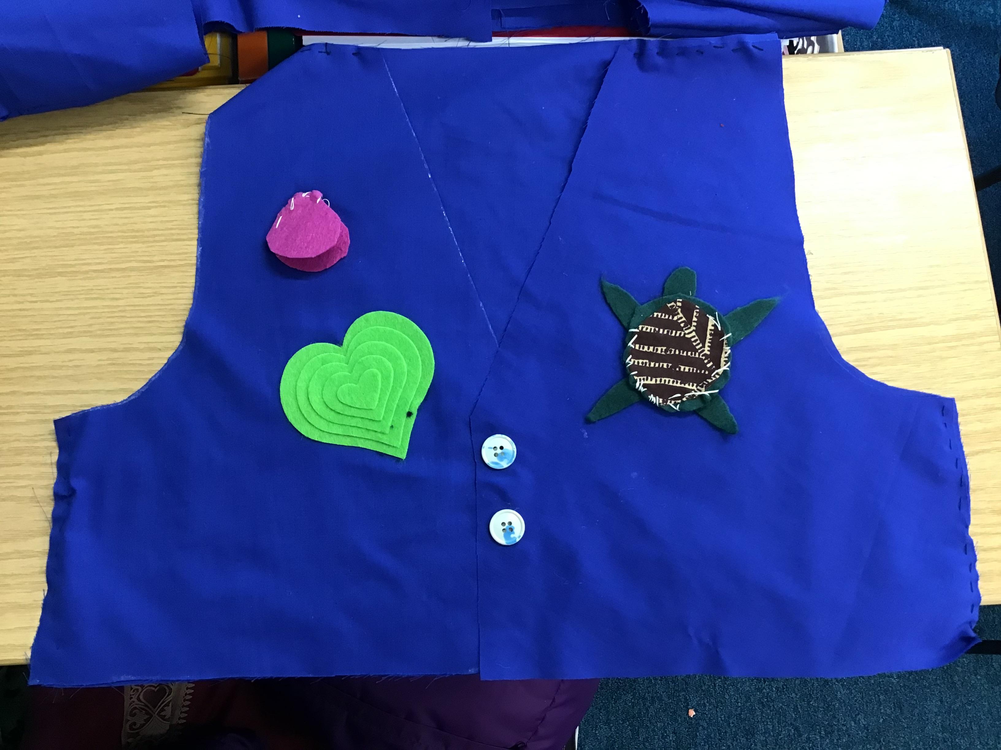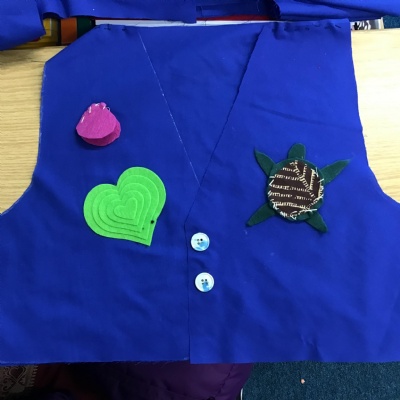 Our DT unit this term has focused on textiles. The children designed, assembled and decorated waistcoats based on the theme "All about Me". Pattern pieces were cut and sewn together using a strong running stitch, some children also decided to use fastenings at the front of their waistcoat. A variety of methods - applique, stitching, crochet - were used to decorate each individual piece.